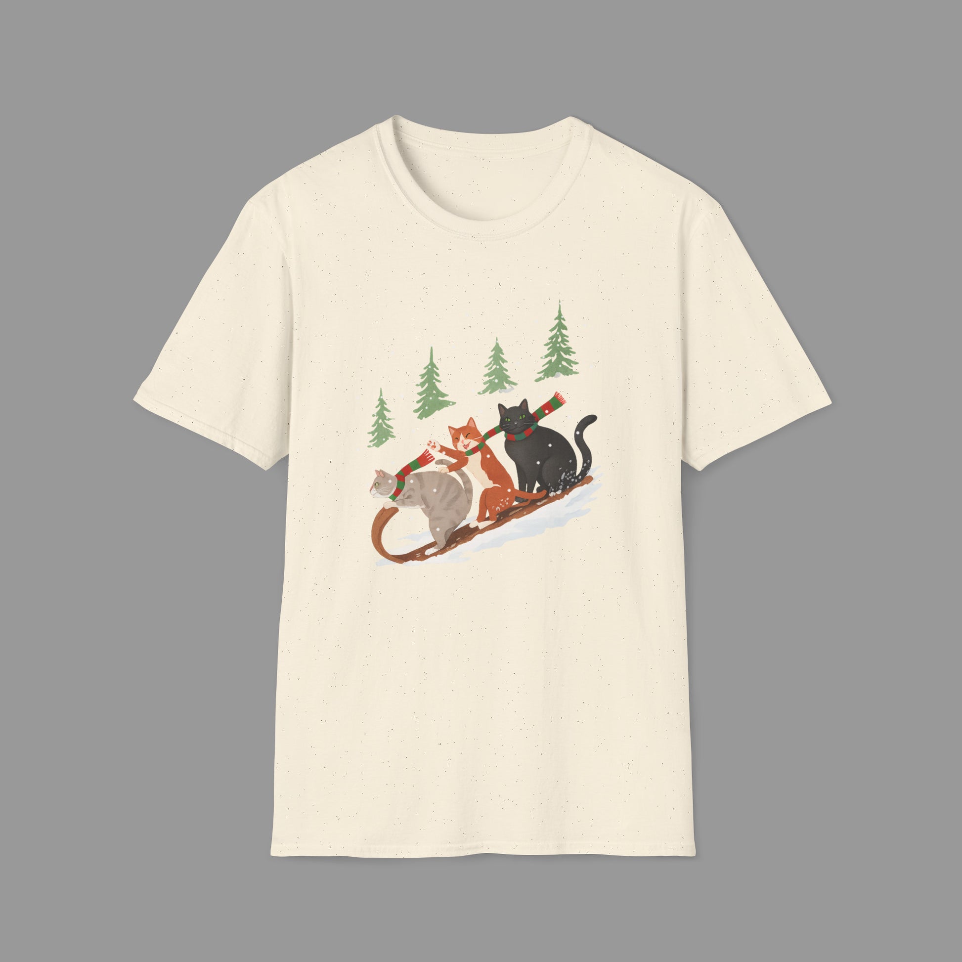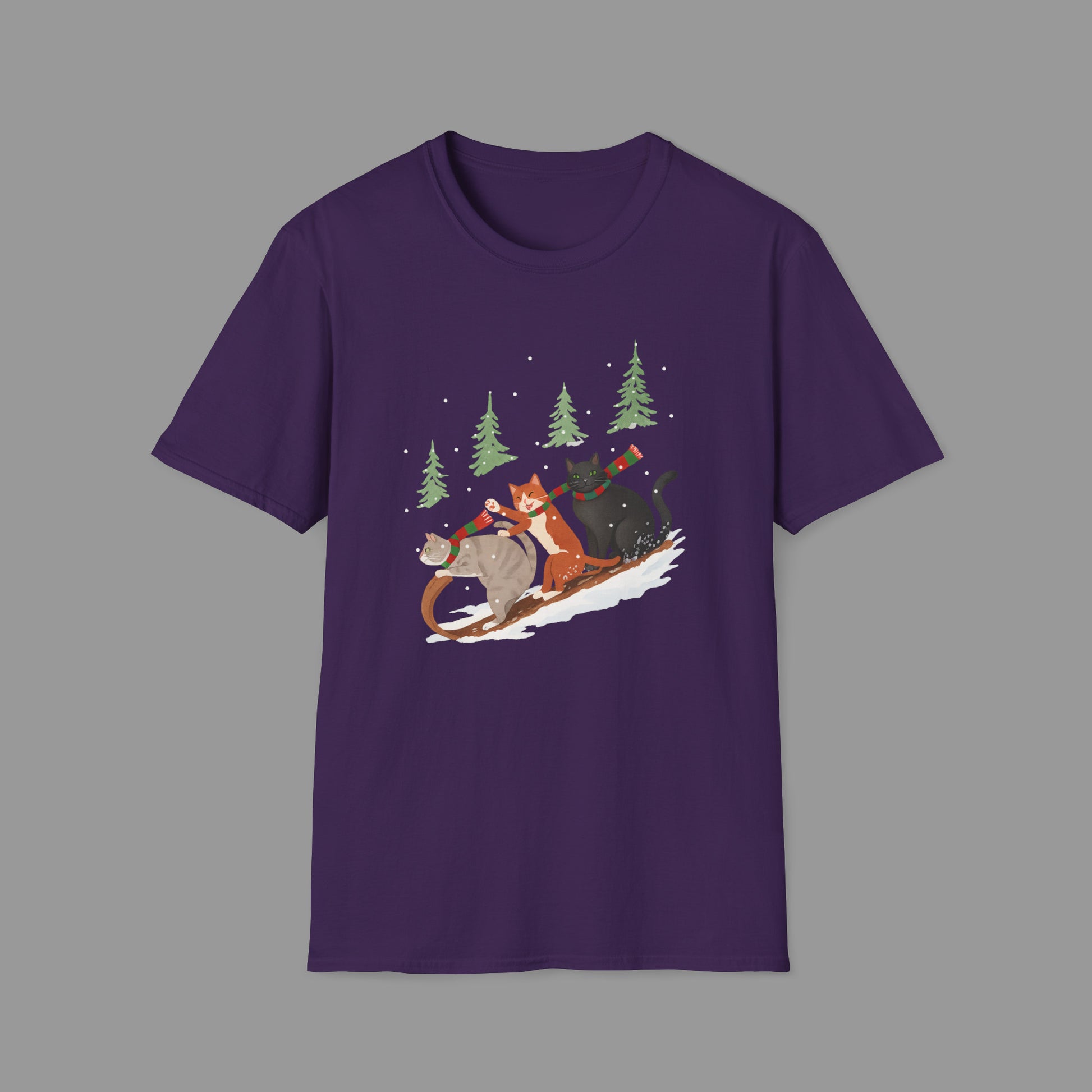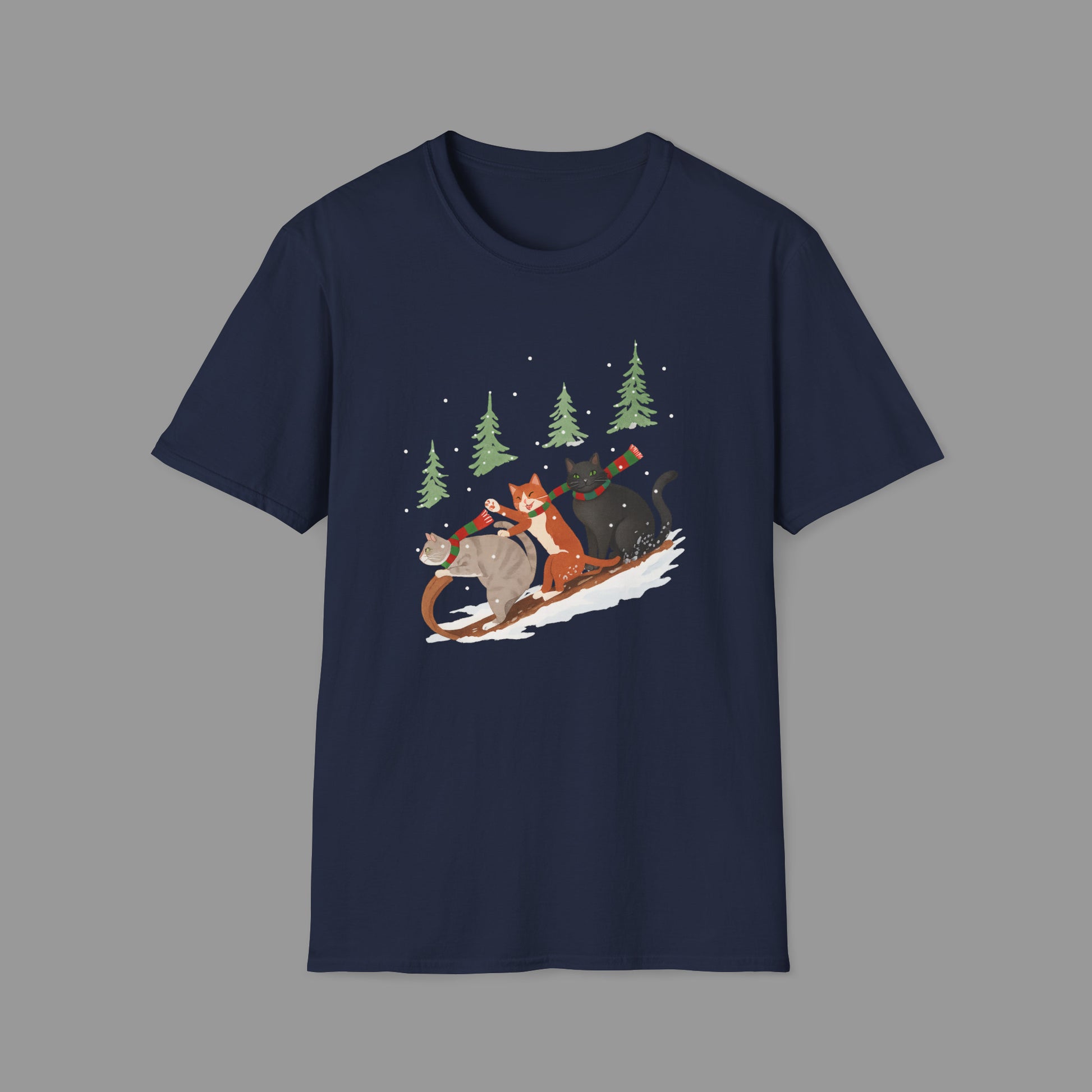 Add a touch of winter magic to your wardrobe with this Playful Winter Cats T Shirt, featuring three adorable cats sledding through a snowy forest. Wrapped in colorful scarves and full of joy, these cute feline friends capture the spirit of fun, friendship, and cozy holiday adventures.